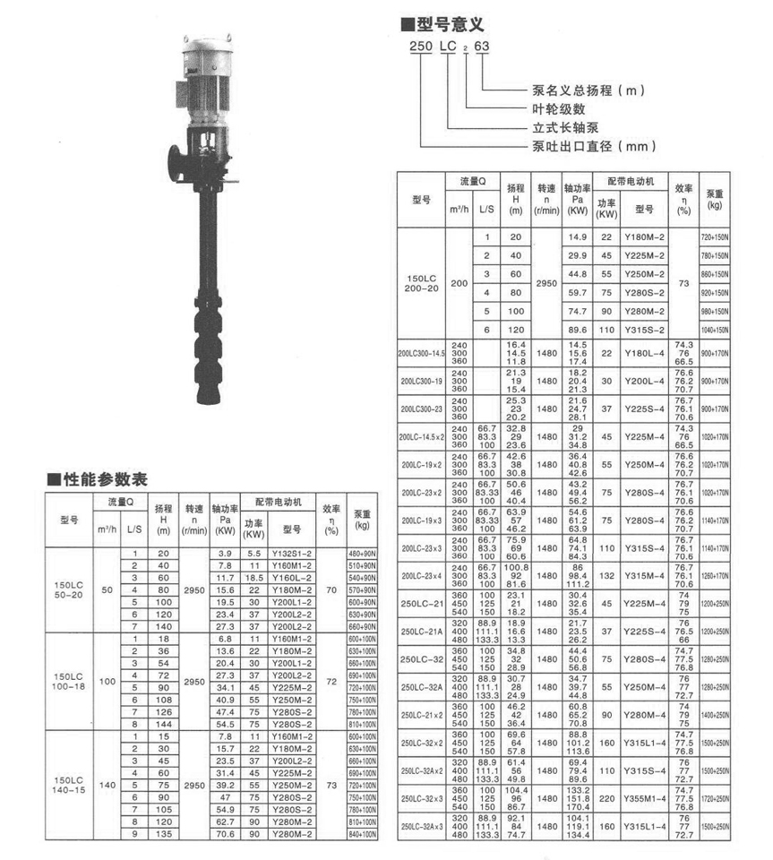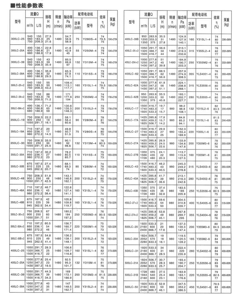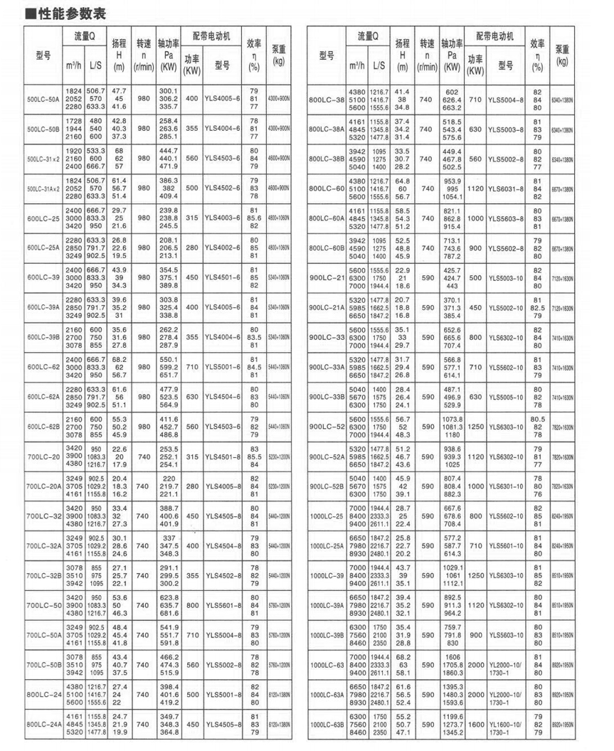 | LC型系(xi)列立式長軸泵,采(cai)用浸沒式葉輪.立(li)式安裝,具有結構(gòu)緊湊,工作平穩,操(cao)作簡便,通用化程(cheng)度高等📐優點。 主要(yao)用途 •用于輸送清(qīng)水、污水、具有腐蝕(shí)性工業廢水或相(xiàng)似的液體🤞。 •工農業(ye)🈲給水及城市工廠(chang)污水的排放。性能(neng)範圍 •轉速:590r/min一2950r/min •出口(kou)直徑:100-1000mm •流🈲量:30-9400m'/h •揚程:9.7-80.4m •功(gong)率:4-2000kw |